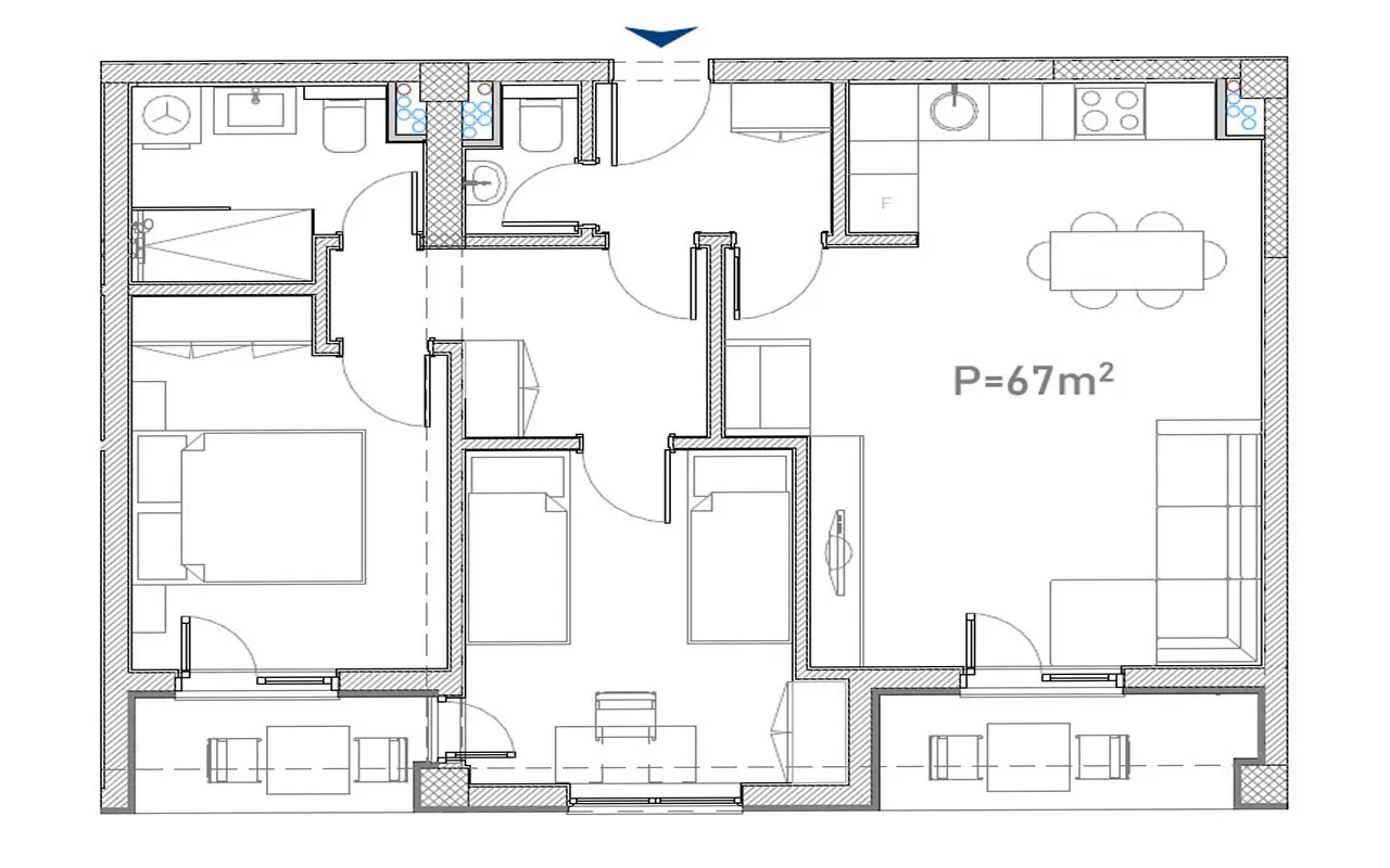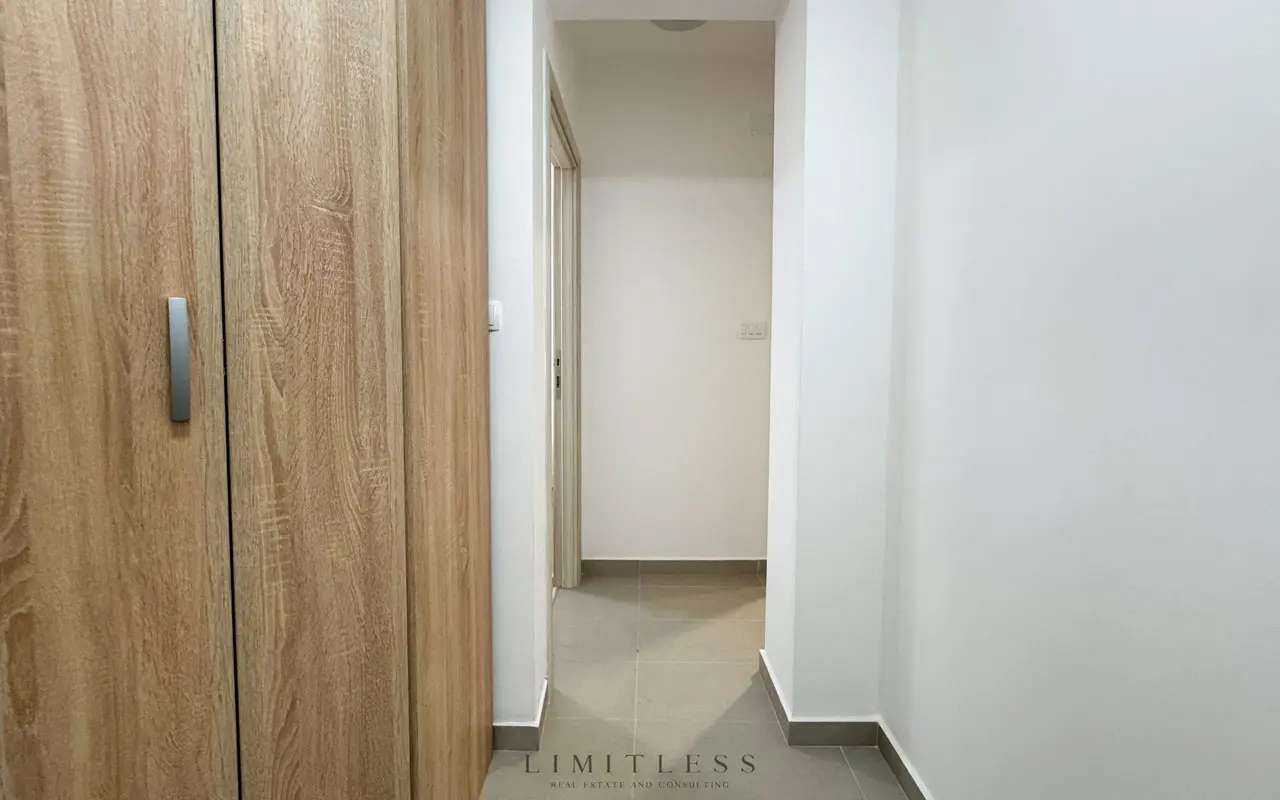 Located in a great area, this apartment with a functional layout is ideal for families. It consists of an open-concept living and dining area, a fully equipped kitchen with quality appliances and generous storage, two spacious bedrooms, a bathroom, a toilet, two hallways, and two spacious terraces. It is conveniently close to parks and schools, and also within walking distance to restaurants, grocery stores, and essential services. Designated garage space is available, which can also be used as a storage space.